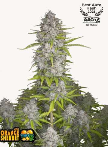 Orange Sherbet Auto (Fast Buds) ist eine sativa-dominante Terpen-Bestie mit bis zu 26% THC und einem Geschmack, der wie frisch gepresster Orangensaft + süß-saures Mandarinen-Sorbet mit cremigem Finish rüberkommt. Nicht umsonst: Gewinnerin beim American Autoflower Cup 2025 (u. a. Kategorie „Best Auto Hash“) – gemacht für alle, die Aroma, Harz und Extrakt-Potenzial feiern.