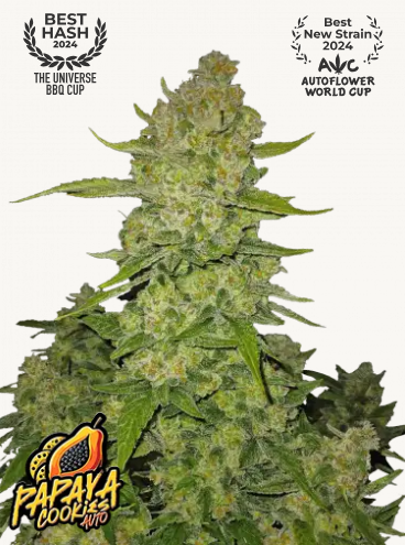 Papaya Cookies Auto™ ist eine Weltmeister-Sorte und eine der besten neuen Sorten 2024 (Autoflower World Cup). Diese Sativa-dominante F5-Hybride, entstanden aus der Kreuzung von Papaya (Oni Seeds) und Cookies Auto F5, ist eine geschmacksintensive Harzmaschine, die für Extraktoren, Geschmacksliebhaber und Züchter gezüchtet wurde, die schnelle, erstklassige Ergebnisse mit minimalem Aufwand erzielen möchten.
